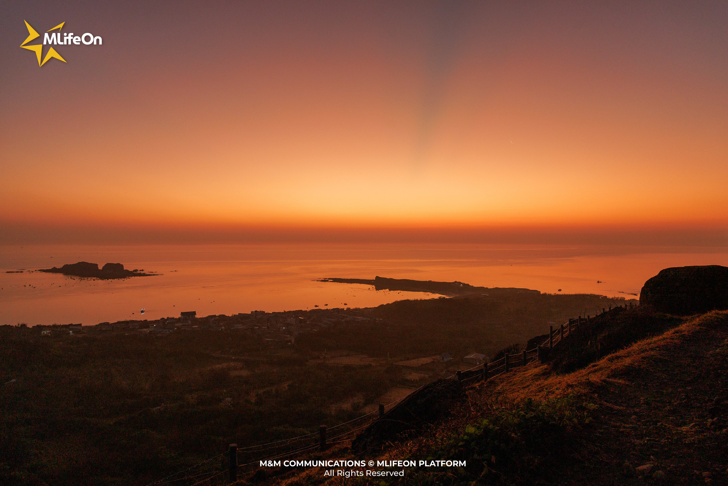 The sea and sky blend together in the dawn light when viewed from Cao Cat Peak, creating an incredibly magical beauty.